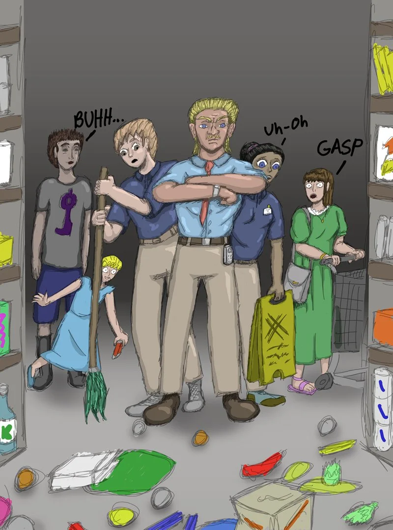The Bard’s Joke is the story of the bumbling adventurer Bill who helps form a team of mostly good-minded individuals who come together to battle the evil forces of the Buster Corps.